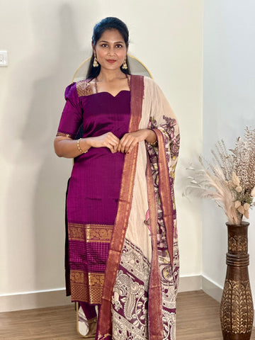 SIYA082 Wine | Iraaya Mangalagiri Silk Top with Kalamkari Dupatta (2-Piece)