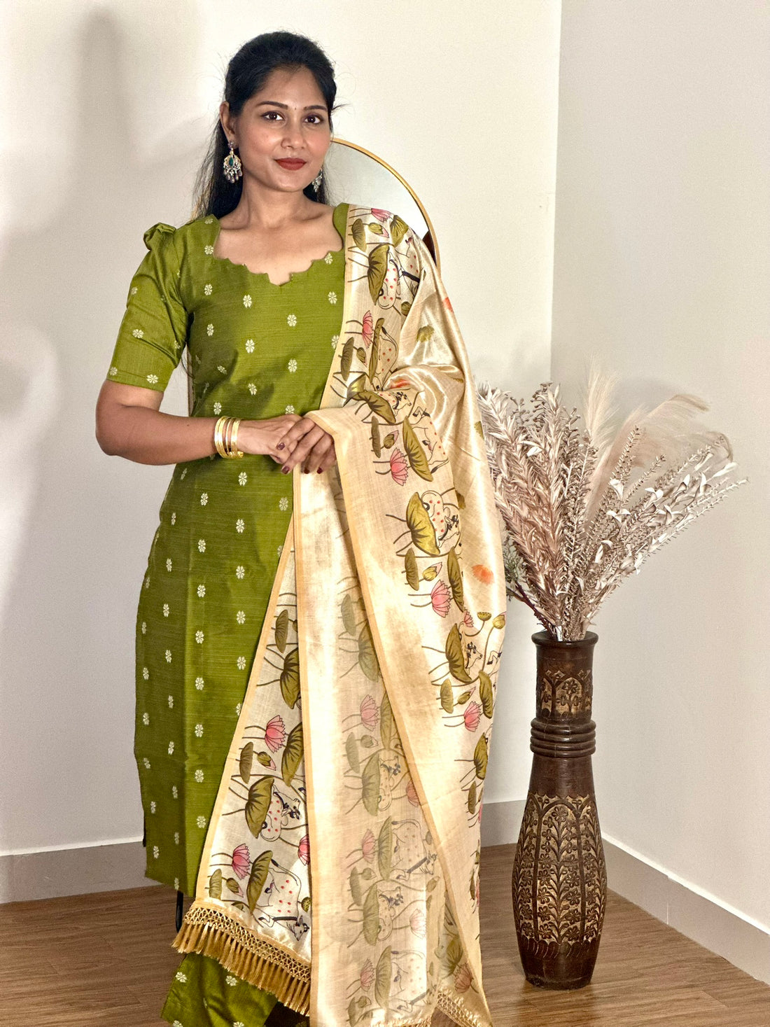 SIYA065 Green | Riyanshi Raw Silk Kurta Set with Digital Print Tussar Silk Dupatta (3-Piece)