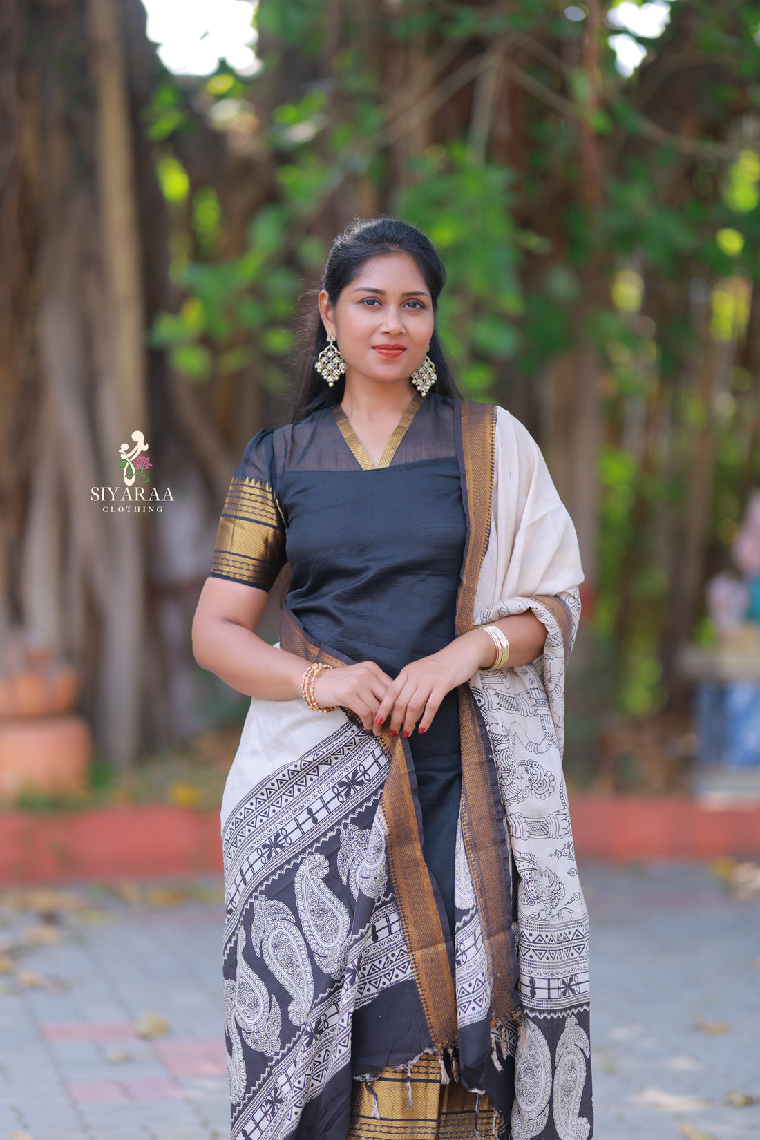 SIYA051 Black| Charvika Mangalagiri Silk Top with Kalamkari Dupatta (2-Piece)