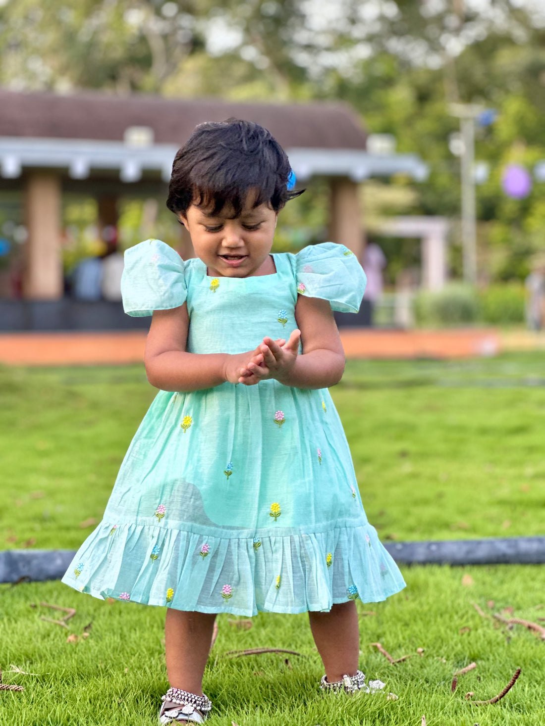 Create adorable twinning moments with our Meher Mul Chanderi Girls Frock 💚 Designed in...