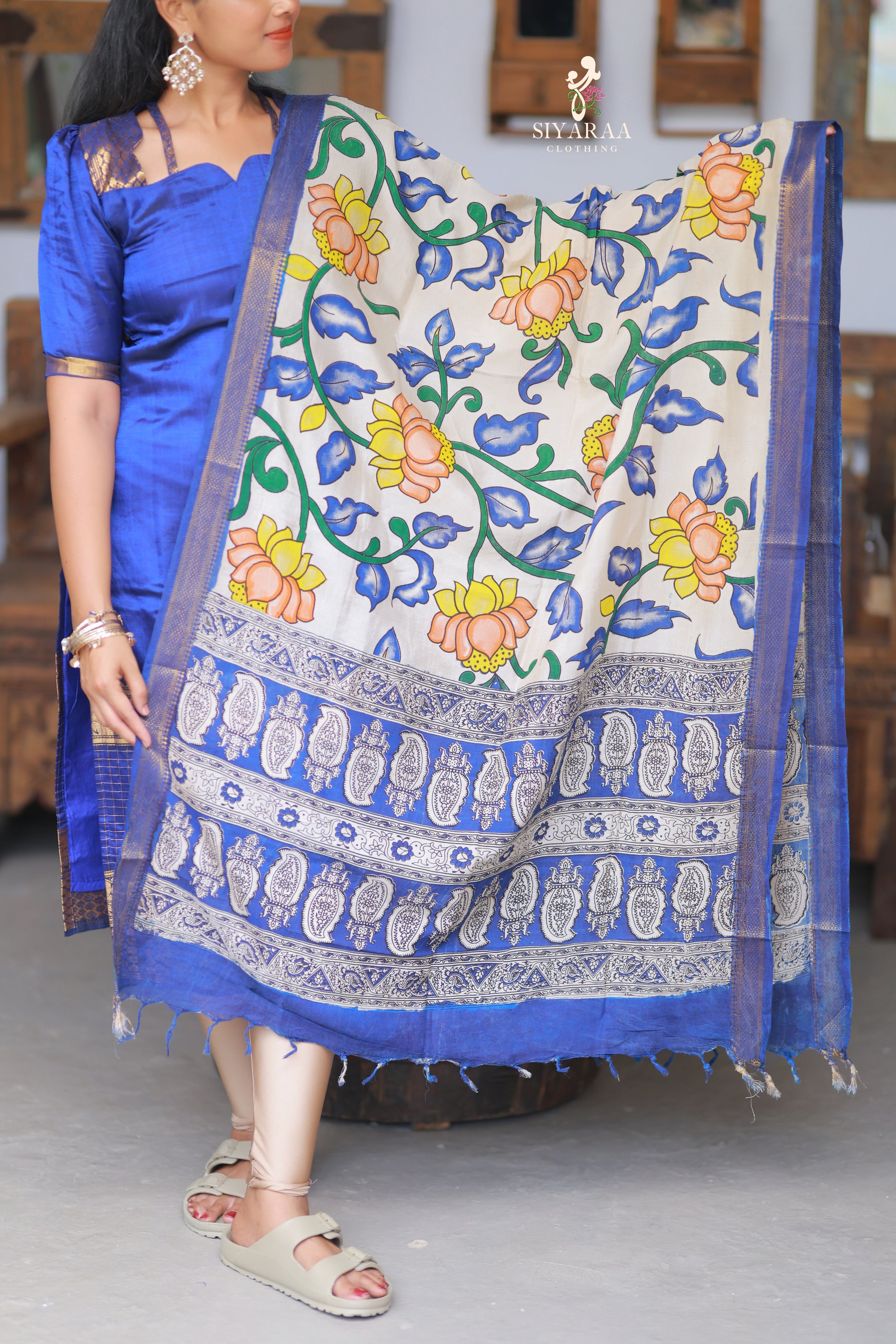 SIYA082 Blue| Iraaya Mangalagiri Silk Top with Kalamkari Dupatta (2-Piece)