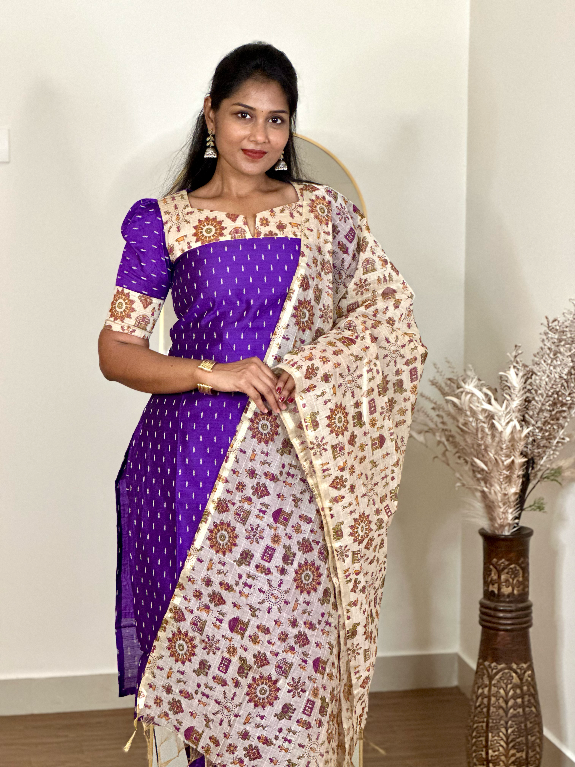 Discover effortless comfort with the Saira slub cotton 3-piece kurta set, designed for relaxed elegance and everyday ease. The subtle texture of slub cotton adds a natural, refined look while keeping the outfit breathable and lightweight.