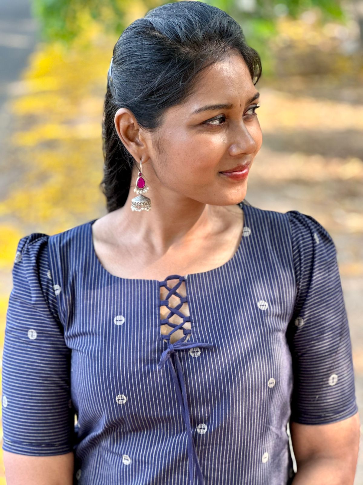 Crafted from breathable handloom cotton, this set offers a soft, natural texture that feels light on the skin while maintaining a graceful silhouette. Perfect for office wear, casual outings, and minimal festive moments, Aarunya is a timeless addition to your wardrobe.